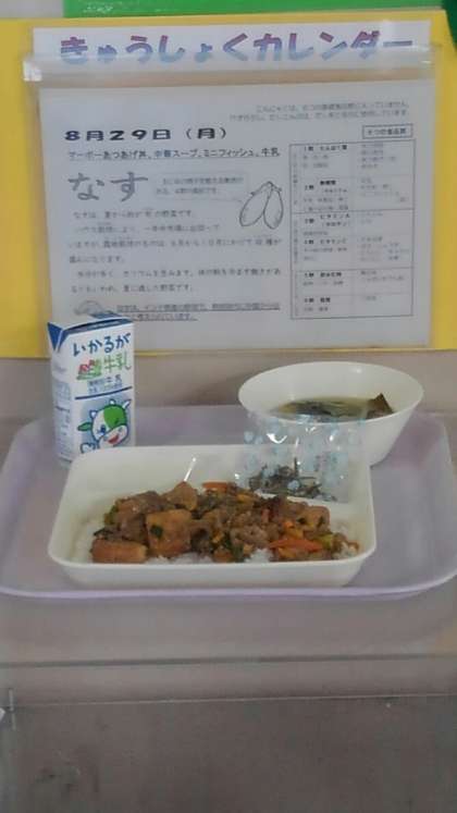 マーボーあつあげ丼 中華スープ ミニフィッシュ ごはん 牛乳