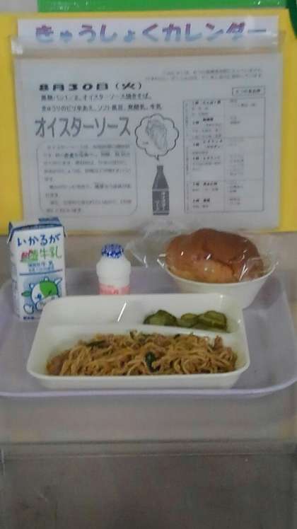 オイスターソース焼きそば きゅうりのピリ辛あえ 発酵乳
