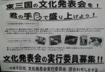 文化発表会実行委員募集しめきりせまる!