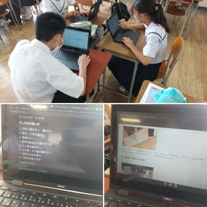 1年生の技術の授業では、2学期から「材料加工の技術」について学習しています。班で相談したり、発表したり、グループ学習を通していいアイデアが浮かびましたか?