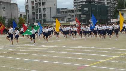 体育大会の予行、予定通りスタートしました。曇り空ですが、雨は大丈夫そうです。