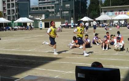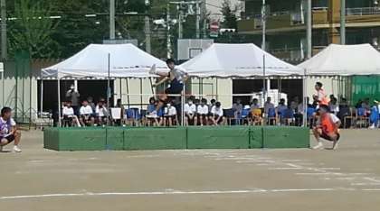 全学年男子による1500m走と2・3年男子による高跳びの様子です。ほぼ予定通りの進行です。
