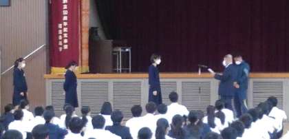 今朝は臨時の全校集会があり、認証式が行われました。令和4年度〜5年度の生徒会役員および令和4年度後期学級役員が今日から正式にスタートです。初心を忘れず、しっかり頑張ってください。旧生徒会役員、前期学級役員の人はお疲れさまでした。今までの経験をまた新たな立場、役割で活かしてくれることと思います。
