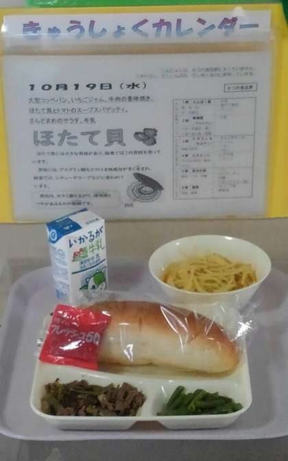 さんどまめのサラダ 大型コッペパン 牛乳 いちごジャム