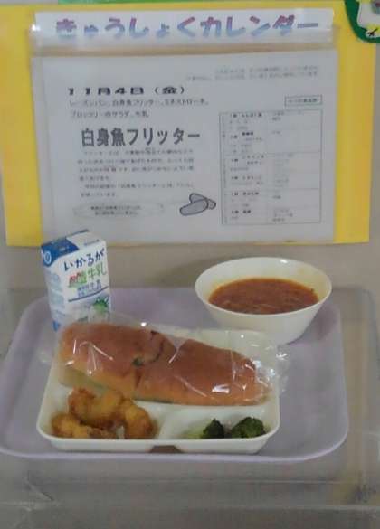 白身魚フリッター ミネストローネ ブロッコリーのサラダ