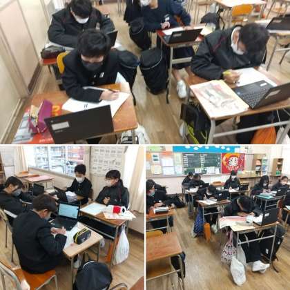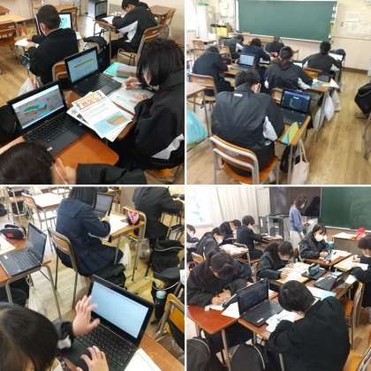 1年生の5時間目の総合的な学習の時間の様子です。先日の校外学習での防災学習のまとめとして、各班で新聞づくりをしています。次回からは清書を進め、クロムブックで撮影した写真を選んで貼り付ける作業も予定しています。新聞の完成が楽しみですね!