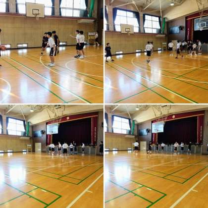 今週は学校で練習です。オフェンスでは2対2や3対3のプレーを練習しています。また試合の各場面に応じたパスや足を使ってディフェンスをする意識をもつこと、アウトナンバープレーなどにも取り組みました。練習を積み重ねる中で、たくさん失敗をして身につくものです。ブロック敗者戦に向けて、さらにレベルアップできるように日々の練習を頑張りましょう。