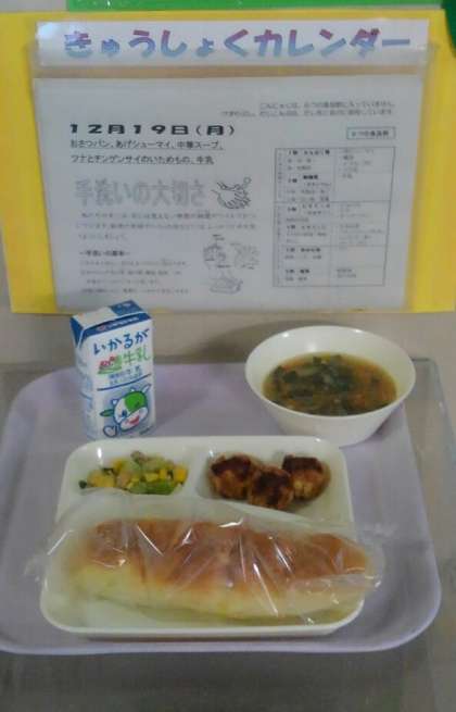 あげシューマイ 中華スープ ツナとチンゲンサイのいためもの