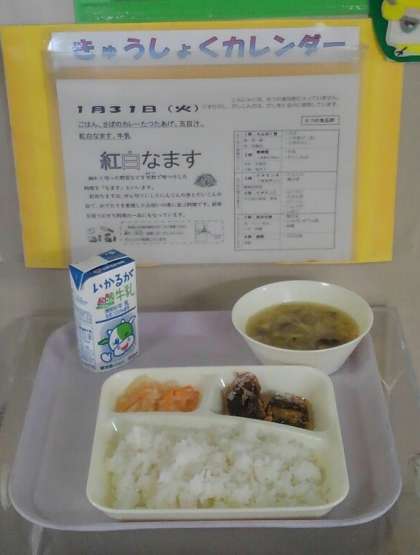 さばのカレーたつたあげ 五目汁 紅白なます ごはん 牛乳
