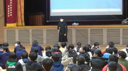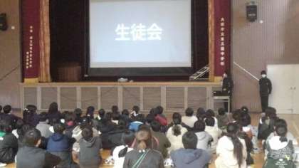 今日の午後、東三国小学校と新東三国小学校の6年生のみなさんを対象に小中交流交歓会を行いました。昨年度はコロナ対策のため、こちらから小学校を訪問する形をとりましたが、今回は実際に中学校に来てもらって、生徒会役員から中学校の生徒会活動や委員会活動、部活動について説明や紹介をすることができました。短い時間でしたが、中学校の様子や雰囲気を少しでも知ってもらうことで、入学に向けての心配や不安が少なくなるといいなと思います。4月に新入生としてみなさんを迎えるのを楽しみにしています。
