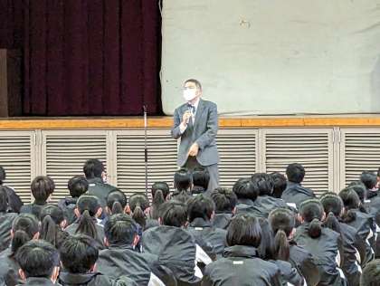 今朝の全校集会で生徒2名の表彰がありました。(詳しくは後日あらためてお伝えします。)その一方で集合状態について注意がありました。大部分の生徒は時間を守って体育館に集合していますが、一部遅れてくる人が今日もいました。また、中には時間ぎりぎりにも関わらず、急ぐ様子が見られない人もいたようです。自分一人ではなく、集団で過ごす意味について、考えてほしいと思います。