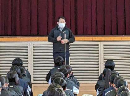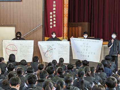 また生徒会役員からは先日の小中交流交歓会後の6年生のアンケート結果について発表がありました。あらためて校内に掲示されるそうなので、生徒のみなさんはぜひ見てくださいね。