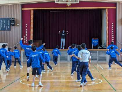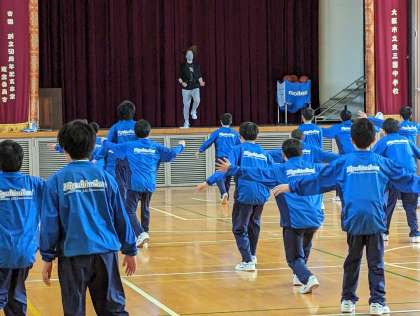 今日は淀川区の「スポーツ出前講座」として、JDAC(一般社団法人ダンス教育振興連盟、ジェイダック)に所属する講師の方に来ていただき、1年生と2年生の男子がダンスの指導を受けました。