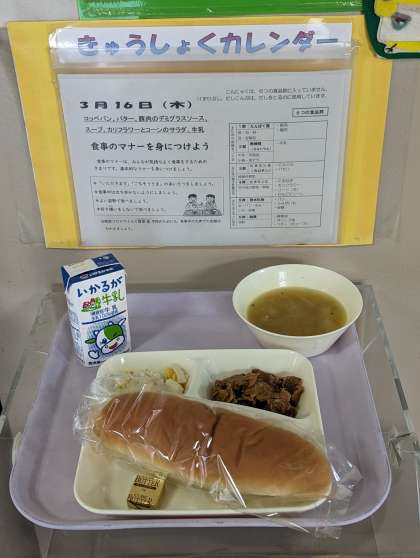 豚肉のデミグラスソース スープ カリフラワーとコーンのサラダ