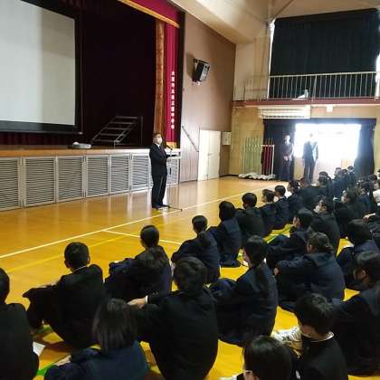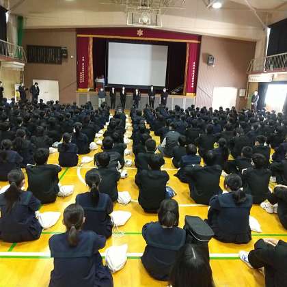 今日から3学年そろっての新年度、新学期が始まりました。まず今年度新しく来られた教職員の着任式、その後始業式が行われました。