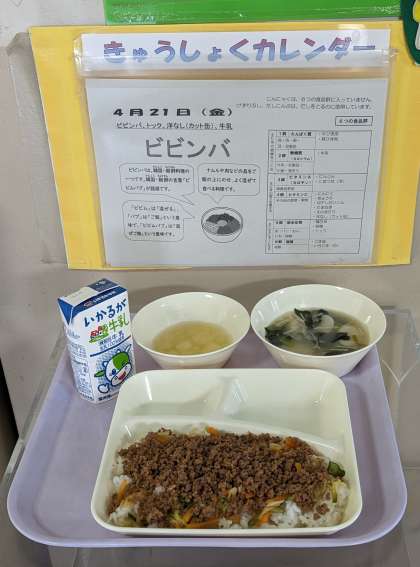 ビビンバ トック 洋なし(カット缶) ごはん 牛乳