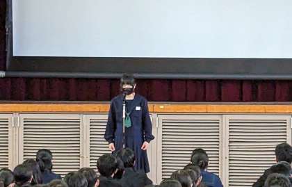 今日は「いじめ(いのち)について考える日」です。朝の全校集会でも校長先生からお話がありました。生徒会役員からも、いじめに関するアンケートやいじめ防止の標語コンテストについての説明がありました。普段の何気ない言葉や行動が、周りの人を傷つけたり、嫌な思いにしたりしていませんか?他人事ではなく、みなさん一人ひとりが自分自身のこととして考える機会にしてほしいと思います。