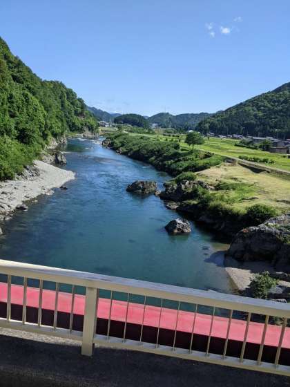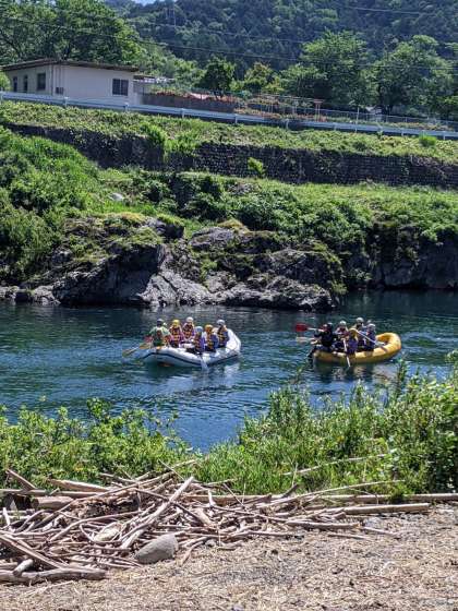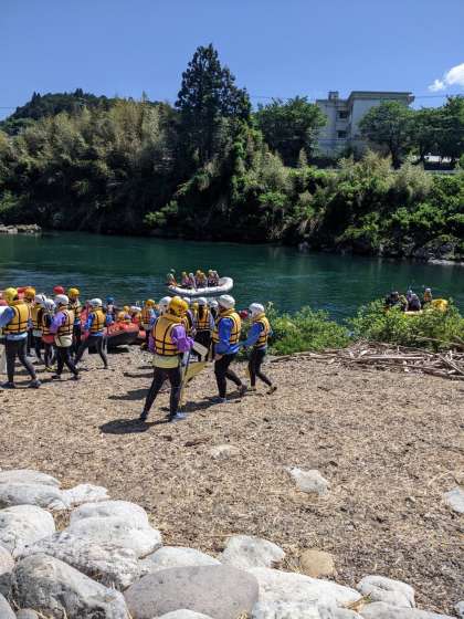 2日目午前中の活動は長良川でのラフティングです。インストラクターの指示に従い、安全面に配慮して行います。