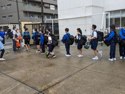 あいにくの天気ですが、雨が本格的に降り出す前にバスに乗車し、無事に出発しました!