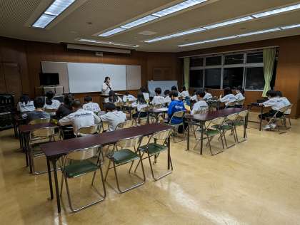 夕食もおいしくいただき、その後、入浴もすませて、今日1日の活動の振り返りや係会議を行いました。