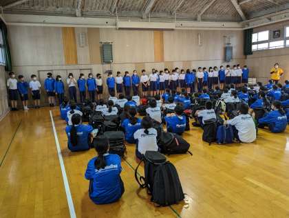 明日は1年生は9時40分から50分の間に東門より登校することになっています。今日の帰校式の際に配られたプリントをしっかり確認してください。特に一泊移住のしおりを忘れないように気をつけましょう。