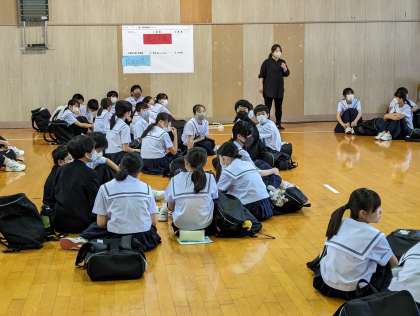 今日は1年生は2限から登校し、今回の一泊移住で良かった点や悪かった点など振り返り、班ごとに発表しました。疲れが残っているとは思いますが、大きく体調を崩している人はなさそうで安心しました。