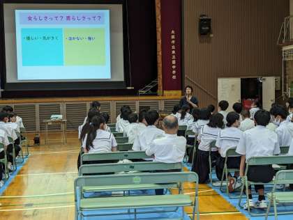 今日の5・6限、NPO法人ウィメンズネット・こうべの方を講師に迎え、2年生の男女共生教育の取り組みを行いました。講師の方のお話や保健委員の発表を通じて、あらためて命の大切さを考えることにつながったのではないでしょうか?