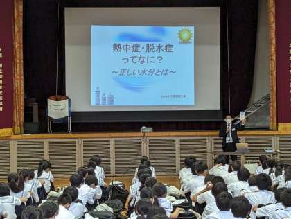 部活動に所属している生徒を対象に部活動集会を行いました。明日からの夏休み中の活動に向けての諸注意の後、熱中症予防講習を実施しました。暑い日が続きますが、今日聞いた話を忘れず、熱中症対策に取り組んでくださいね。
