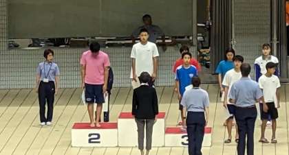 また、男子200m背泳ぎは、最後の50mで逆転、優勝というすばらしい結果となりました。これで1日目の100mに続いて近畿大会の出場が決まりました。おめでとうございます!