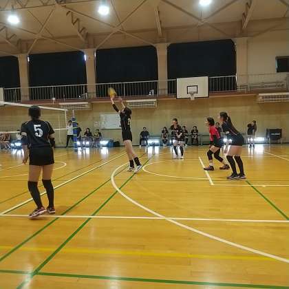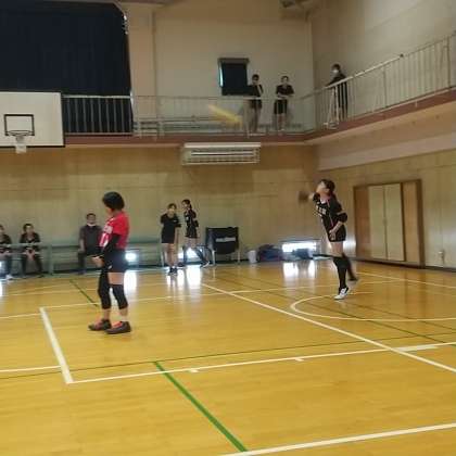 本日、本校の体育館で女子バレーボール部の秋季総体予選が行われました。美津島中学校、大桐中学校に勝利し、見事に予選を突破、決勝トーナメント出場を決めました。