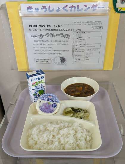 ビーフカレーライス[米粉] 野菜のピクルス ぶどうゼリー ごはん