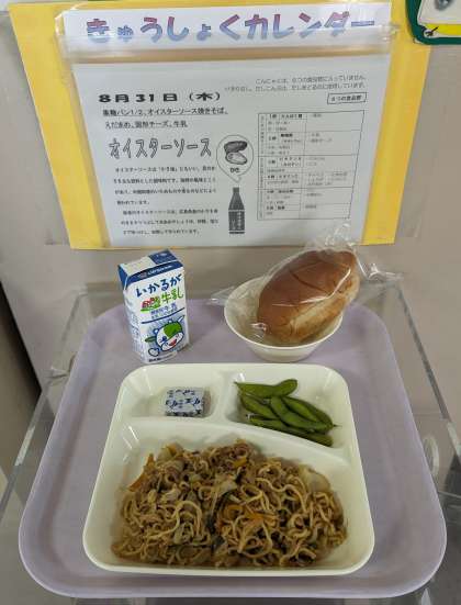 オイスターソース焼きそば えだまめ 固形チーズ 黒糖パン(1/2)