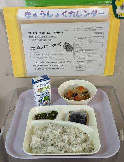 さごしの塩焼き 含め煮 オクラのいためもの 菜飯 牛乳