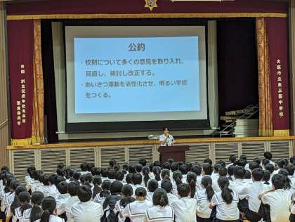 立候補者のみなさんは、みんなのために頑張ろうという気持ちをこれからも大切にしてください。また、今回投票する側になったみなさんも、生徒会役員や一部の人に任せてしまうのではなく、東三国中学校をもっとよくしていくためには生徒全員の力が必要なんだということを忘れないでくださいね。