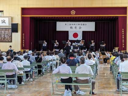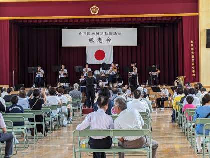 17日(日)と18日(月)、東三国地域・新東三国地域においてそれぞれ敬老会の式典があり、本校の吹奏楽部が演奏しました。