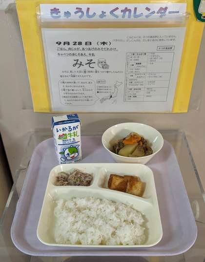 肉じゃが あつあげのみそだれかけ キャベツの赤じそあえ ごはん