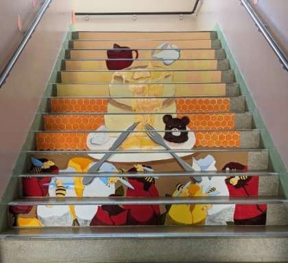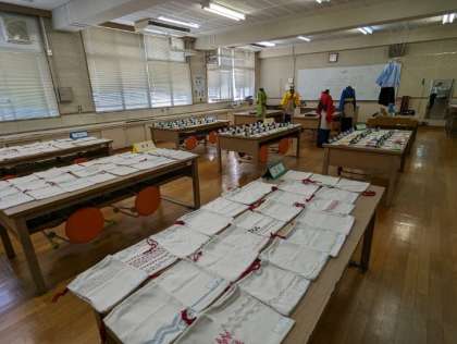 昨年度も好評だった美術部による階段絵や手芸部の作品など、日頃の部活動で完成させた力作も展示されました。