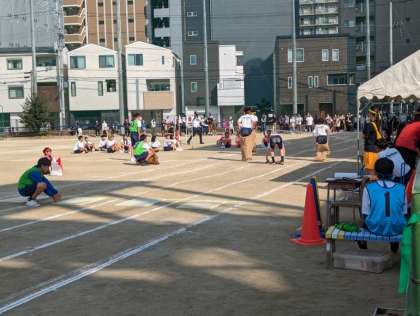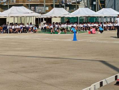 全学年によるバラエティ競走です。さまざまな困難を乗り越え、ゴールを目指します。