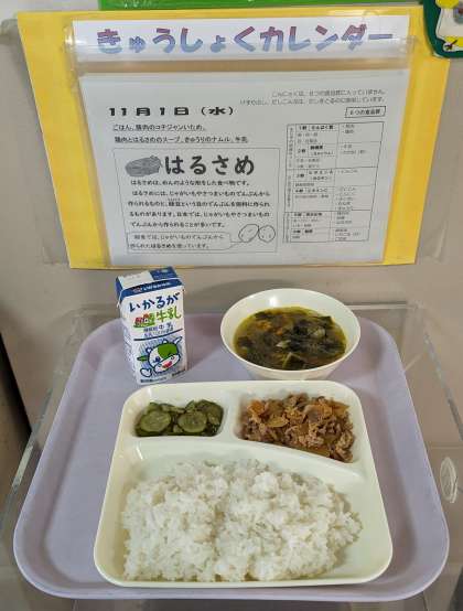 豚肉のコチジャンいため 鶏肉とはるさめのスープ きゅうりのナムル ごはん 牛乳
