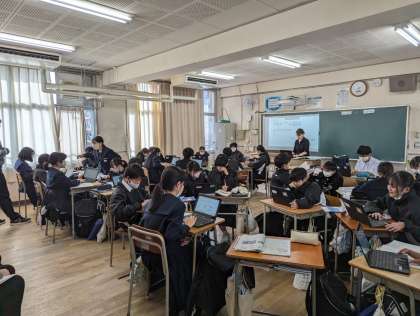 昨日の5時間目は1年生の全クラスで研究授業を行いました。1組は技術、2組は英語、3組は美術の授業。それぞれ複数の先生に見守られながら、9月の2年生と同様にしっかり取り組んでいました。