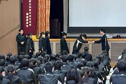 昨日の全校集会では吹奏楽部の表彰がありました。12月2日(土)に開催された第21回大阪市立中学校アンサンブルフェスティバルにおいて、金管五重奏で銅賞を獲得しました。