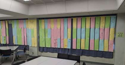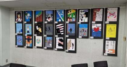 その後、小学5年生から中学2年生までが取り組んだ標語と中学2年生が美術の授業で取り組んだポスターの掲示作業も行われました。標語とポスターは1月終わりごろまで掲示される予定です。近くに立ち寄られる機会がありましたら、ぜひご覧いただき、投票していただければと思います。