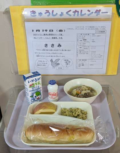 豚肉と野菜のスープ煮 カレーソテー りんご 発酵乳 おさつパン