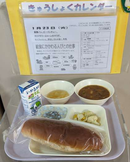 ビーフシチュー カリフラワーとコーンのサラダ ミニフィッシュ