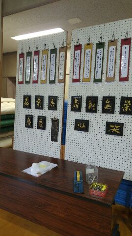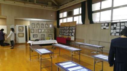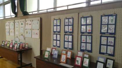 格技室では1年生の「ドットアート」が部屋の真ん中で