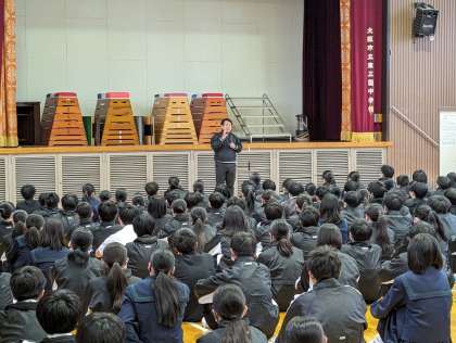 61期生から63期生までが揃っての全校集会も、今日を含めてあと3回となりました。3年生はこれから公立高校の入試を控えている人もいます。1・2年生は明日で学年末テスト1週間前です。体調を崩さないように気をつけながら、それぞれにとっての困難を乗り越えていってほしいと思います。