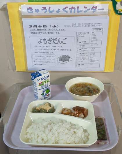 鶏肉のみそバターソース 五目汁 きな粉よもぎだんご 焼きのり