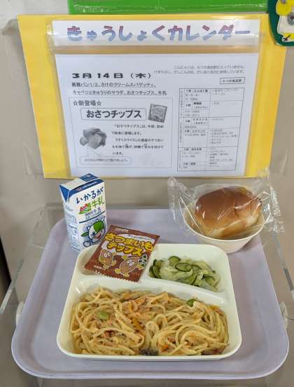 さけのクリームスパゲッティ キャベツときゅうりのサラダ