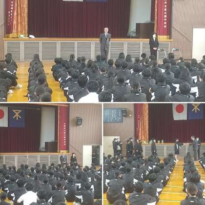 今朝の全校集会では、東三国地区青少年を守る会の会長川野様と東三国社会福祉協議会の会長村上様にお越しいただき、1・2年生の標語および2年生のポスターの表彰を行いました。1・2年生合わせて19名(うち2年生の1名は標語とポスターのダブル受賞です。)が表彰状と楯を受け取りました。また、1・2年生には参加賞としてクリアファイルが後日配付されます。楽しみにしていてくださいね!