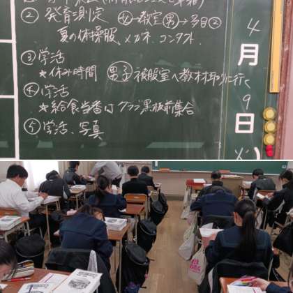 2年生の3、4時間目の様子です。副読本の配布、日直カードの作成、班編成等を行っています。発育、視力測定もあります。新学期はバタバタします。